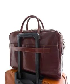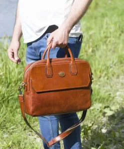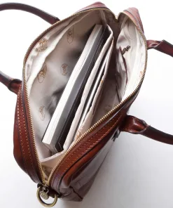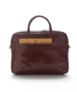 Bolsa de trabajo con doble compartimento individual y carcasa para PCFabricado completamente en Italia por artesanos expertos del cuero mediante el uso de cuero bovino curtido con taninos vegetales y posteriormente pulido a mano.