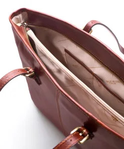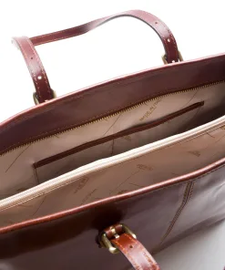 Entièrement réalisée en Italie par d’habiles maroquiniers qui utilisent du cuir bovin et des tanins végétaux pour être ensuite tamponné manuellement
