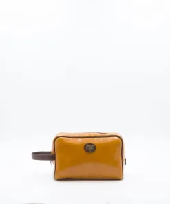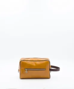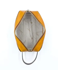 Beauty case 100% Made in Italy realizzato in vero cuoio Toscano, con manico laterale in pelle