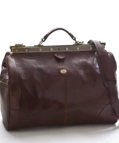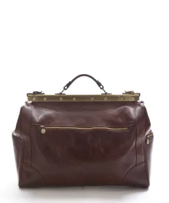 Borsone da Viaggio Vintage 100% Made in Italy realizzata in vero cuoio Toscano con cerniera in metallo rigida