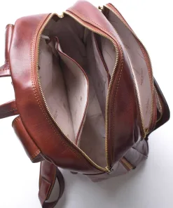 Zaino artigianale 100% Made in Italy realizzato con vero cuoio Toscano, con le spalline in pelle regolabili.