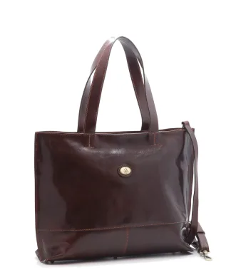 Borsa Tote 100% Made in Italy realizzata in vero cuoio Toscano, con tracolla in pelle regolabile e rimovibile.
