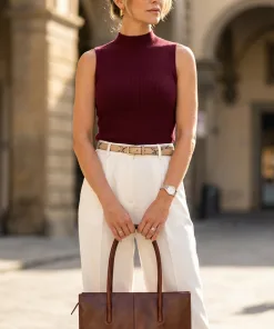 Realizzata completamente in Italia da abili pellettieri mediante l’utilizzo di un pellame bovino conciato con tannini vegetali e successivamente tamponato a mano.