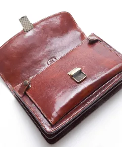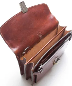 Borsa a mano 100% Made in Italy realizzato in vero cuoio Toscano, con tre scomparti, manico in pelle rimovibile e tasca frontale.