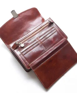 Realizzata completamente in Italia da abili pellettieri mediante l’utilizzo di un pellame bovino conciato con tannini vegetali e successivamente tamponato a mano.