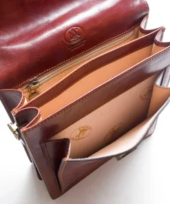 Borsa a mano Postino 100% Made in Italy realizzato in vero cuoio Toscano, con due scomparti, manico in pelle, tracolla in pelle regolabile e rimovibile e tasca frontale.
