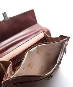 Cartella piccola 100% Made in Italy realizzata in vero cuoio Toscano con tracolla in pelle rimovibile e regolabile.