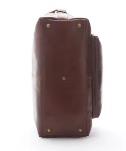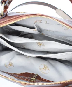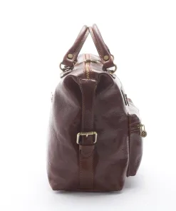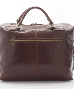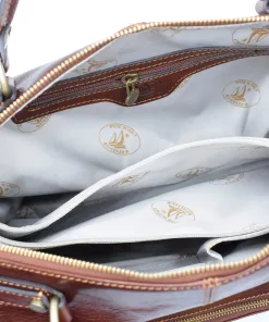 Borsa da lavoro 100% Made in Italy realizzata in vero cuoio Toscano con due tasche frontali con chiusura a zip e con tracolla in pelle rimovibile e regolabile.